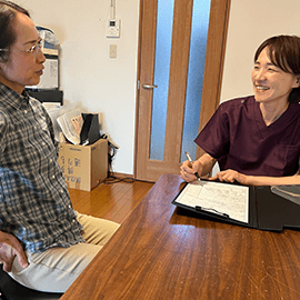 整体院春院⻑は病院勤務時代、お客様にご⾃宅に伺い、腰痛を予防、再発させないために⼿すりの設置のアドバイスなど住居環境へのフォローも積極的に⾏ってまいりました。その経験を活かし、現在の家屋環境変更のアドバイスをさせていただきます。