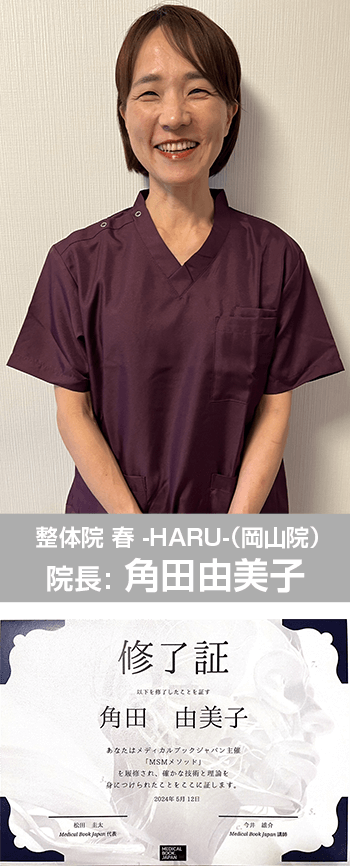 整体院春代表の今井は現在、東京都板橋区に2店舗、東京都西東京市に1店舗、岡山県岡山市に1店舗の直営店を運営しながら休日は痛み痺れの根本治療の最先端「MSMメソッド療法」の東京エリア担当認定講師として活躍しております。