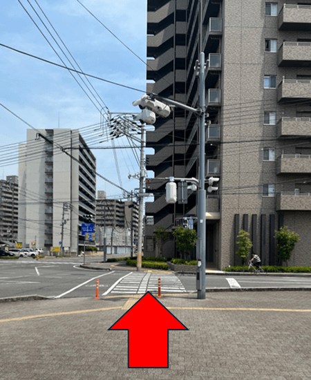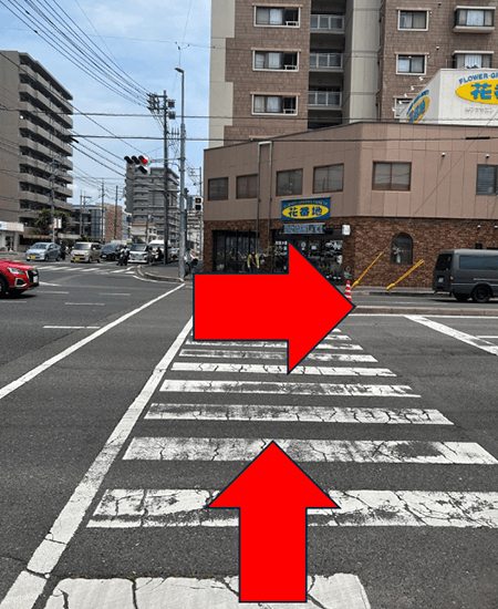 3横断歩道を直進します。