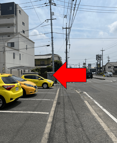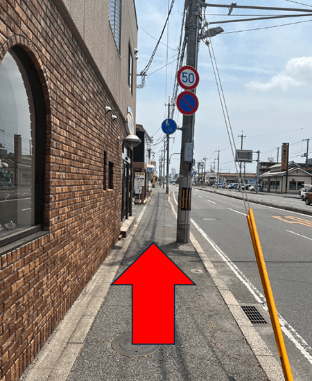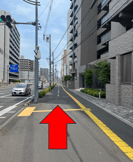 2左に道なりに進み、横断歩道に向かいます。