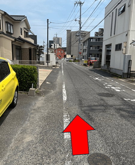 9しばらく道なりに直進します。